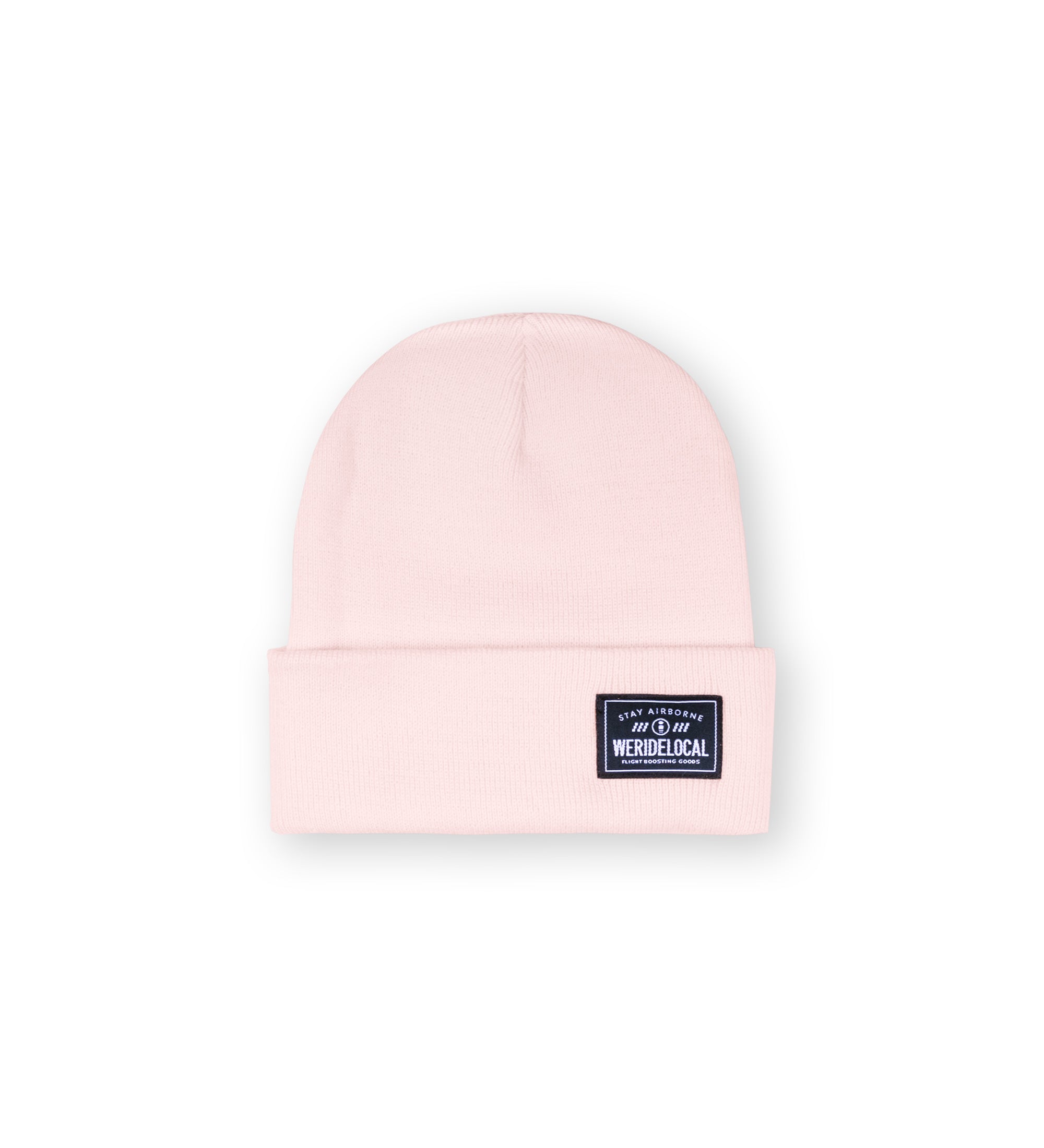Stay toasty with the AIRBONE BABY PINK BEANIE. Perfect for a windy day (or a bad hair day!)