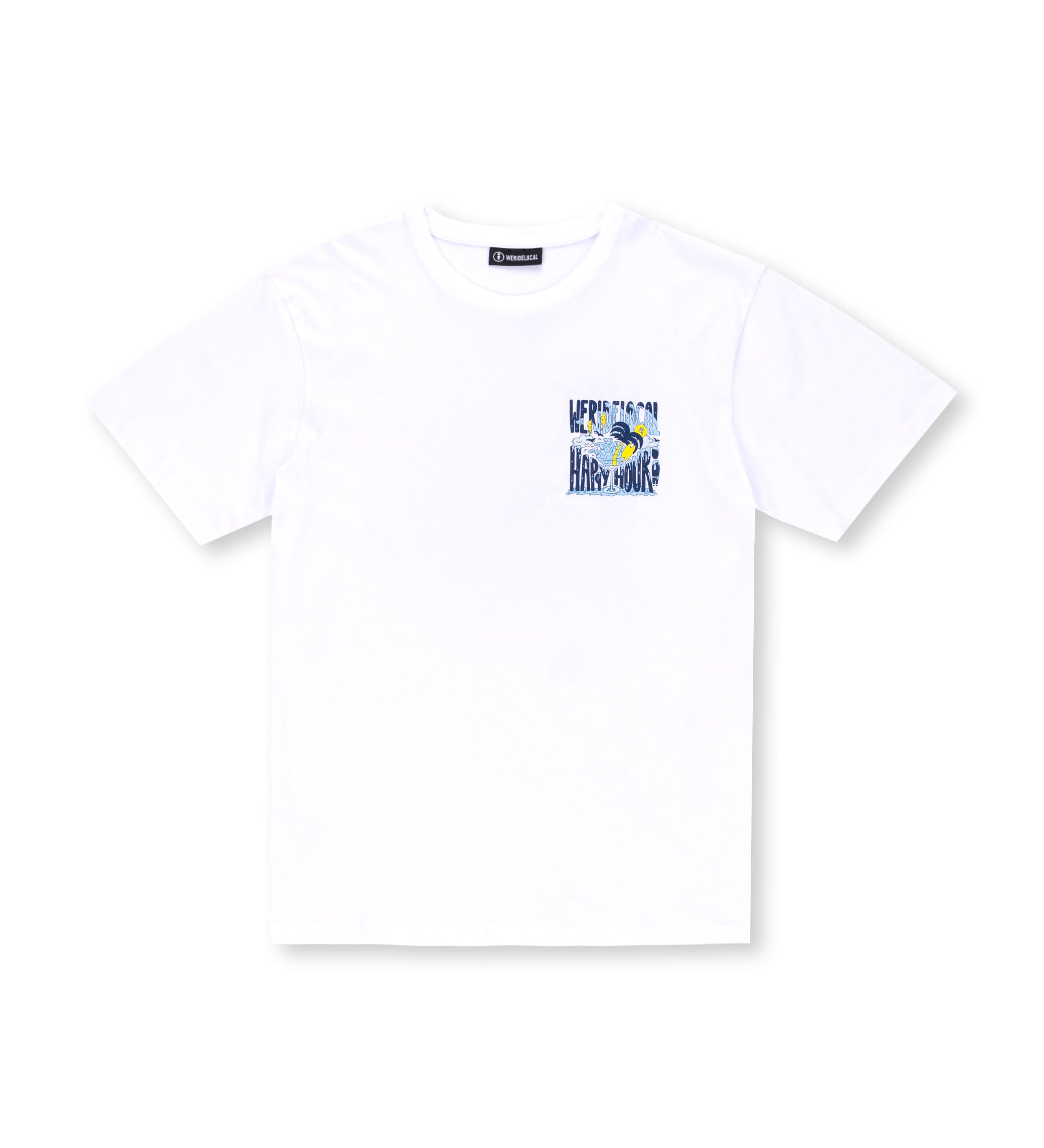HAPPY HOUR WHITE TEE. Designed for post-surf celebrations and tropical vibes. Perfect for happy hour hangs with your crew. Ideal for beach days, casual meetups, and those perfect moments when the day winds down.